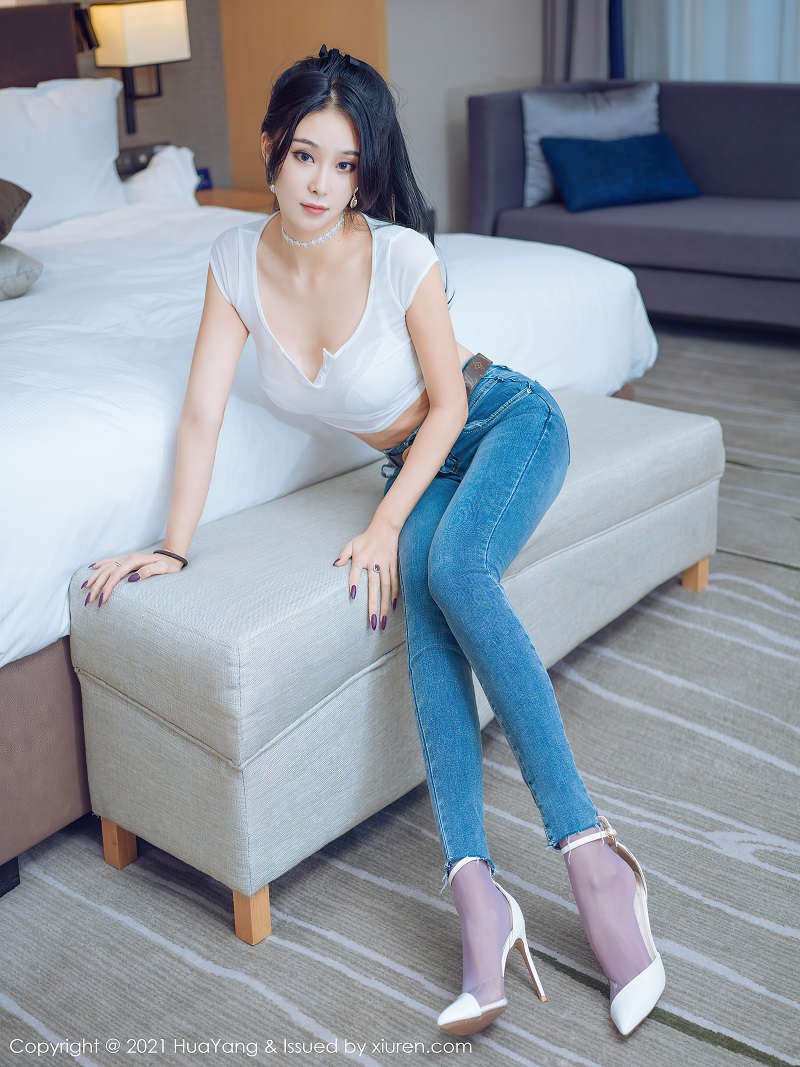 [HuaYang花漾] 2021.05.20 VOL.405 蓝夏Akasha 牛仔裤与蕾丝内衣丝袜